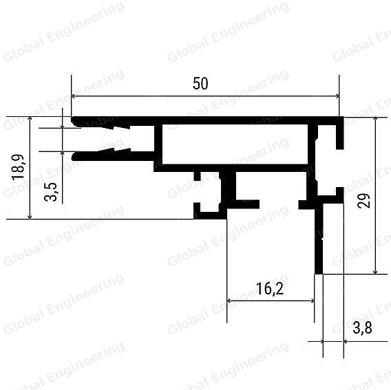 комбинированная алюминиевая профиль-шина 46 мм с 2-мя пазами 8,6 и 19,3 мм (3/4 дюйма)